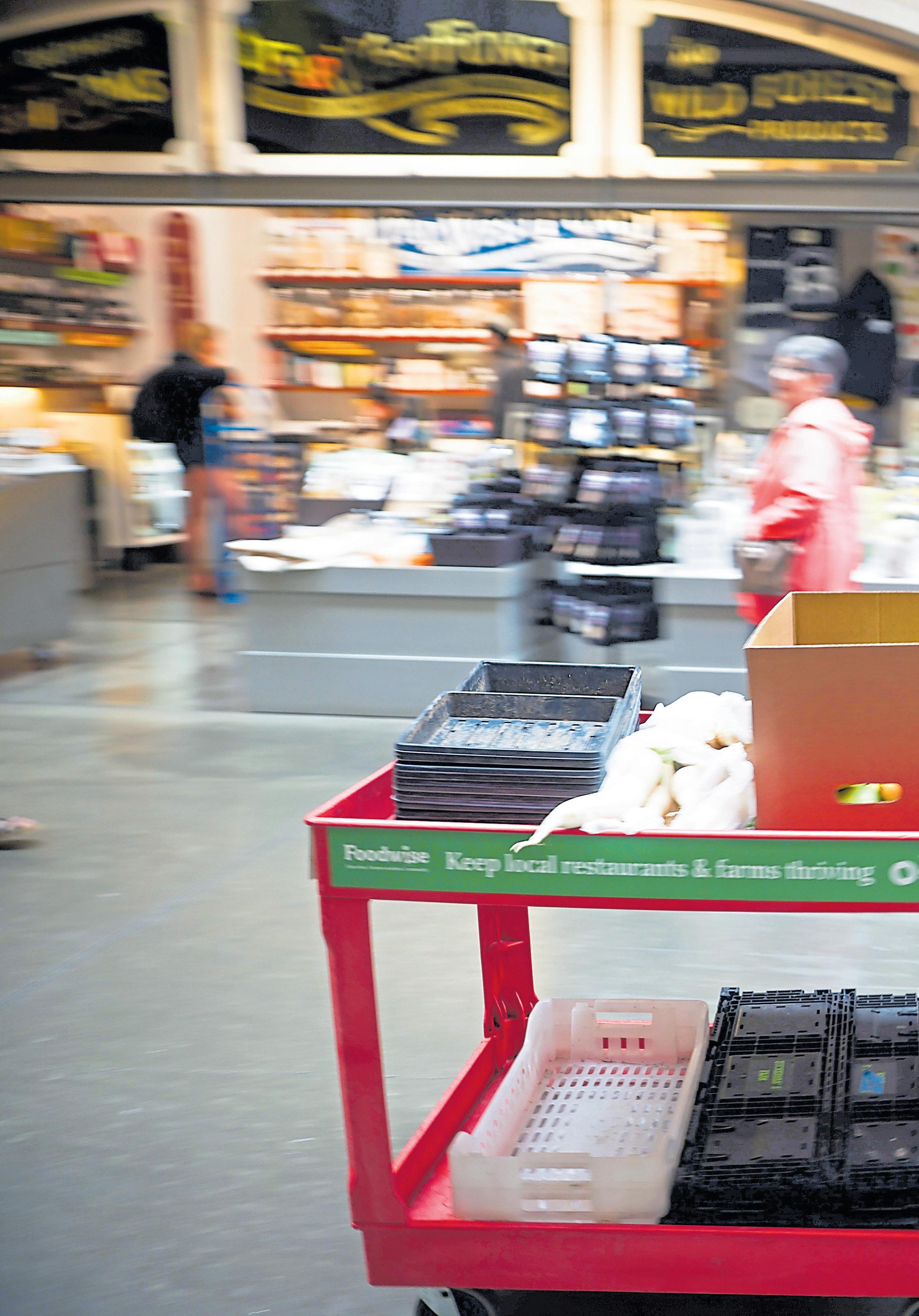 Above: Edible Excursions founder Lisa Rogovin, center, shares tastes and tidbits of San Francisco food history with Canadian guests Lori Greenberg and her daughter, Brianna, during a food tour of the Ferry Building Marketplace in September.