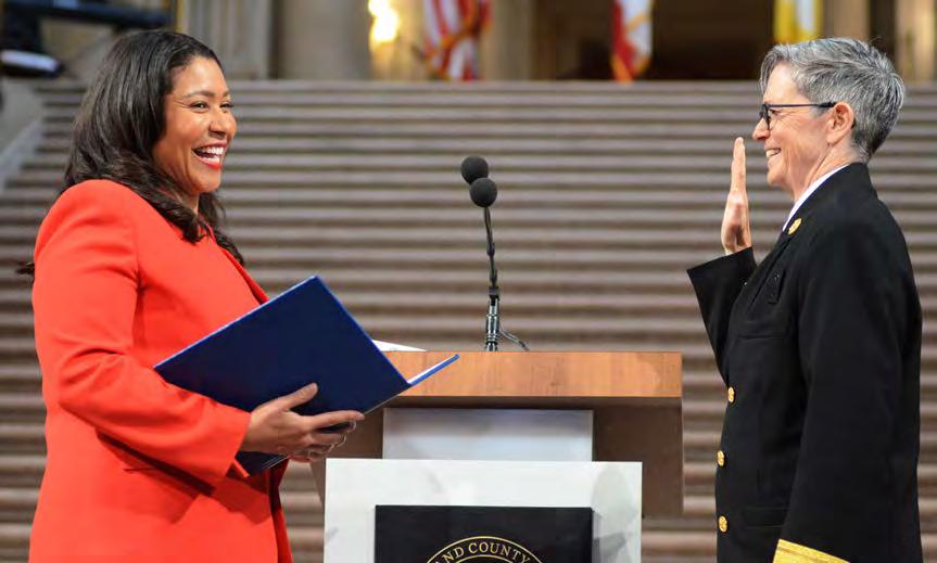 Mayor London Breed, left, swore in Jeanine Nicholson as chief of the San Francisco Fire Department in a ceremony at City Hall on May 6, 2019.