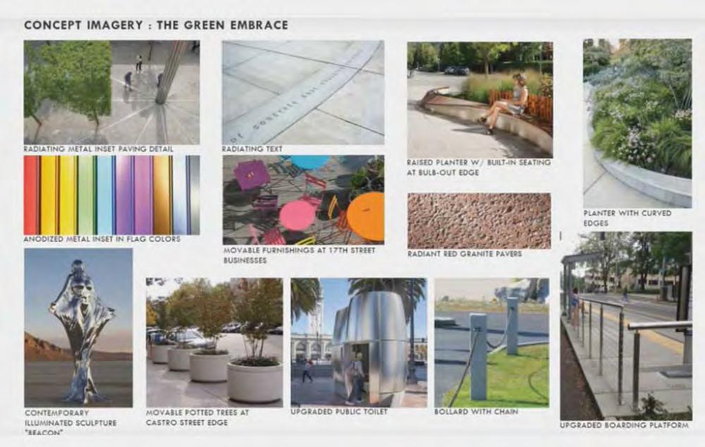 Esterbrooks said the most-accepted design among the limited group that has been consulted, dubbed the “Green Embrace,” would increase sidewalk space by 4,000 square feet. It also imagines the space without the Chevron gas station at 2399 Market Street.
