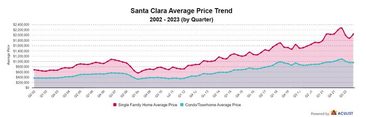 -6% Change $1,747,232 January2023 $2,088,599 January2022 $1,747,232 January2023 $1,927,062 December2022 Change 10% YearoverYear(YoY) MonthoverMonth(MoM) $961,482 January2023 $1,026,304 January2022 Change 1% $961,482 January2023 $955,404 December2022 Change -1% JANUARY2023 AveragePrice-SantaClaraCounty