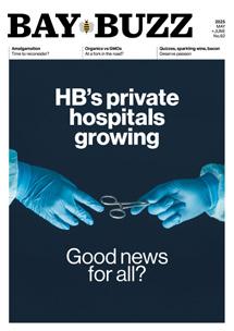 Case for amalgamation gathers strength. HB’s private hospitals expand ... OK? Pan Pac charts sustainability gains. Our food systems heading wrong direction? High cost of local teams competing nationally. A sparkling wine future for HB? Advocating for Napier health services. Meet the Red Queen. HBRC rated worst! Vibrant life at 90. Bacon and quiz addictions.