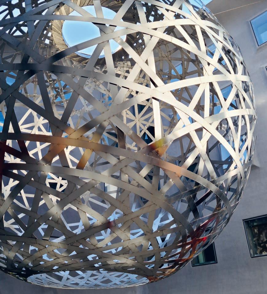 The “livMats Pavilion” in the University of Freiburg’s Botanic Garden features a bioinspired design. The networks of interwoven fiber structures found in the saguaro and prickly pear cacti are echoed here by a load-bearing structure of robotically woven flax fibers. Flax has similar mechanical properties to fiberglass; a robot places fiber bundles on a winding frame, allowing the building elements to grow with virtually no waste or offcuts. The only concession is a waterproof polycarbonate skin to protect the fibers from moisture and UV radiation. Structures like these combine and consolidate knowledge from a whole array of branches. In fact, the “livMats Pavilion” was designed as a collaboration between the ITECH master’s program at the Cluster of Excellence Integrative Computational Design and Construction for Architecture (IntCDC) at the University of Stuttgart and biologists from the Cluster of Excellence Living, Adaptive and Energy-autonomous Material Systems (livMatS) at the Univer-