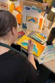 Known for painting local subjects, Francie Austin Miller’s vibrant work comes from layers of transparent watercolor lending a jewel tone to an impressionistic style.