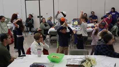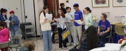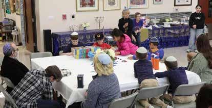 The children and parents of Congregation Shaar Hashalom's religious school welcomed the first night of Chanukah to the tunes of an electric violin as the Menorah candles were lit. The children of all ages worked together to present their special Chanukah play. After the play, there were four different craft tables set to allow the children to work with fruits and vegetables making their own special Menorahs and other Chanukah designs.