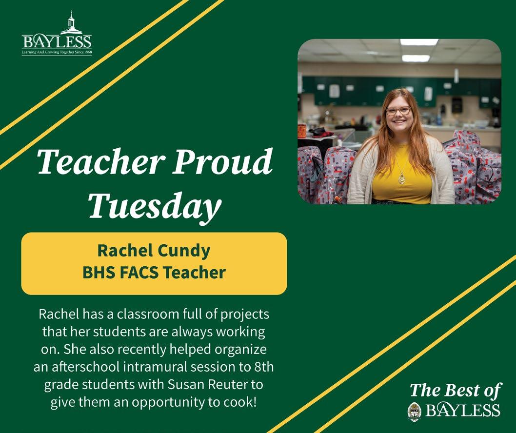 Every day, educators at Bayless do a tremendous job making sure our students have the opportunity to become Smart, Good and Strong. This year we have honored some of them with #TeacherProudTuesday on the building Facebook accounts, district Instagram page and the district Twitter account. Here are some of those honored this spring: