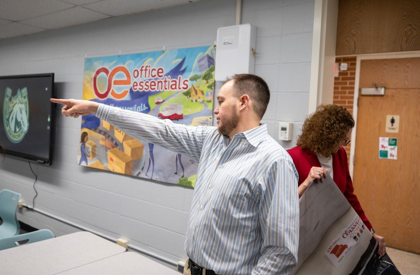 Over Spring Break, Classroom 219, which sits in the same building as the auditorium, got a hefty remake courtesy of Office Essentials and the Hon Furniture company. English Language Learner specialists Tiffany Maloney and Matthew Gibson share the room throughout the day.