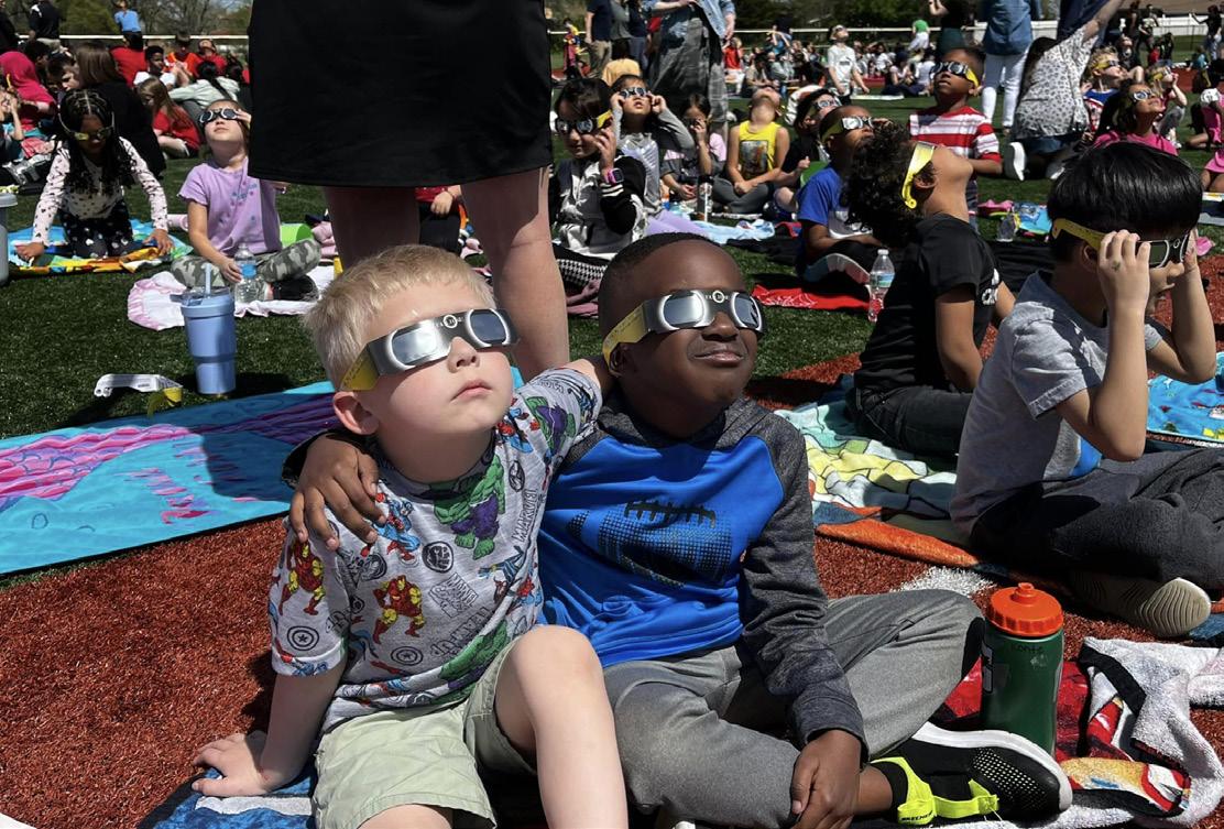 Students and staff alike were able to take in the solar eclipse on April 8. High School Science Teacher Art Wilde provided a voice-over on Bayless Ballpark and Bayless Field speakers, narrating the event.