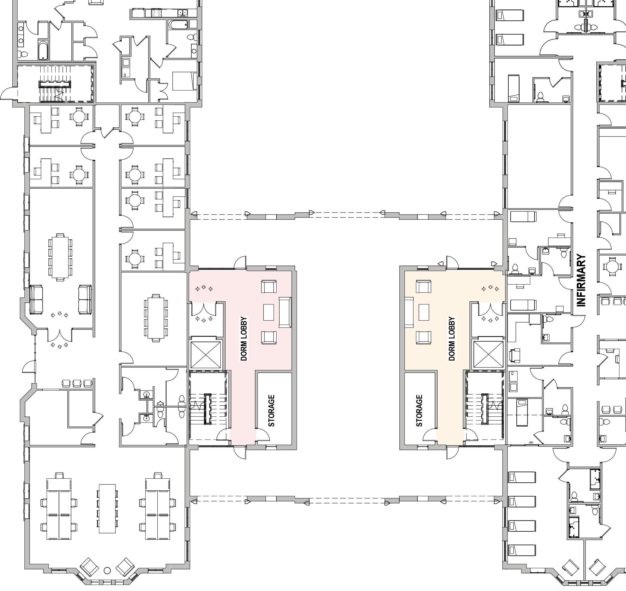 The beautiful new building honors the architectural heritage of our historic campus and houses two dorms that will provide students with comfortable and modern living spaces. The new Wellness Center is a testament to our commitment to creating an environment where all students feel supported and can comfortably receive medical and mental health care when needed. In addition, the Admission Suite and event space will help us welcome and make a positive impression on visitors and prospective families.
