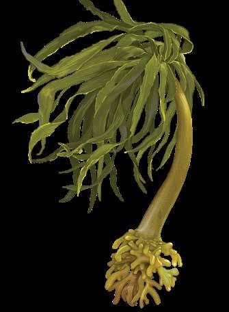 grow in clumps like an epaulet fringe on the rocky coast. Sea palms reach up to two feet in height and turn a rich caramel color in the summer and fall as they drop their spores. The crashing waves are doing them a favor, by battering other species out of the way. The spores stay close, which renders populations more vulnerable to threats like marine heat waves and overharvesting. Eventually winter storm surges best the mature palms, ripping them out by their holdfast roots and clearing the rocky coast, until the spores shoot up in early spring.