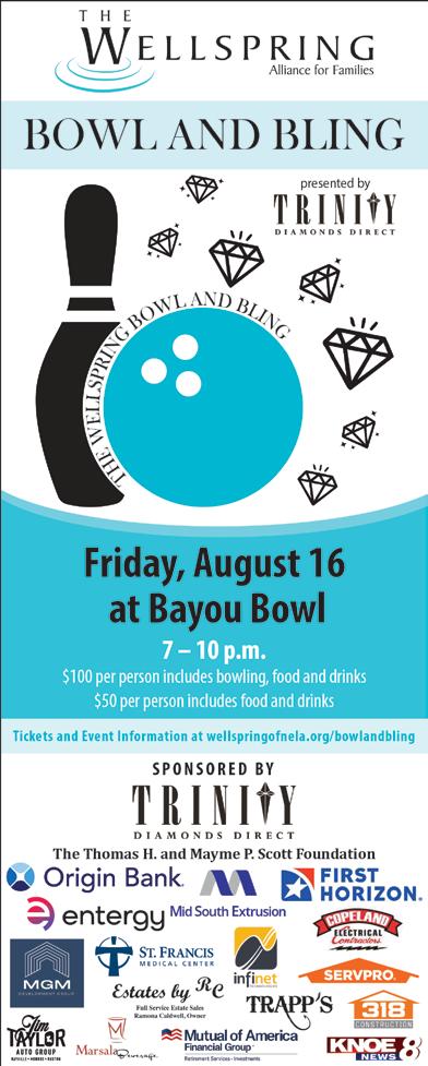 Make plans now to attend The Wellspring Bowl & Bling on Friday, August 16 from 7-10 p.m. at Bayou Bowl. Bowl & Bling is a fun night out where it is not your skill that counts – it’s YOU! Come join the fun as they throw strikes, spares, and more than a few gutterballs to raise money for one of Northeast Louisiana’s oldest and most effective non-profits! Enjoy unlimited bowling in the black lights while listening to a variety of great music by DJ TBayB. You will enjoy delicious food from Trapp’s and drinks from Marsala Beverage!