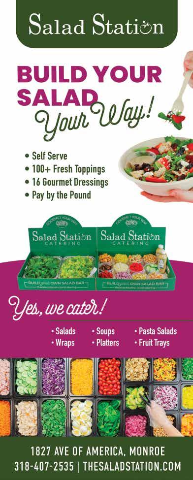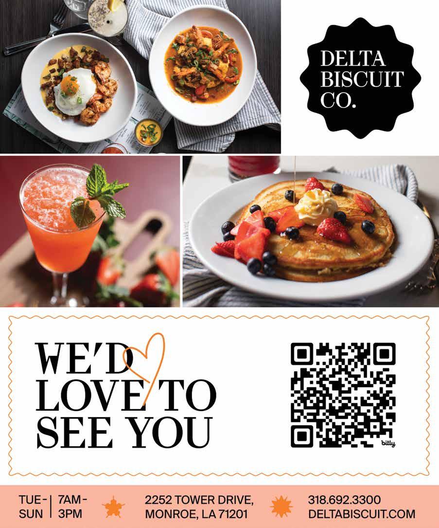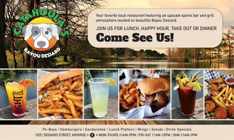 Offering a variety of seafood favorites like Salmon Caesar Salad, Shrimp and Gouda Grits, and Blackened Shrimp Tacos, these dishes highlight some of the finest flavors in Northeast Louisiana.
