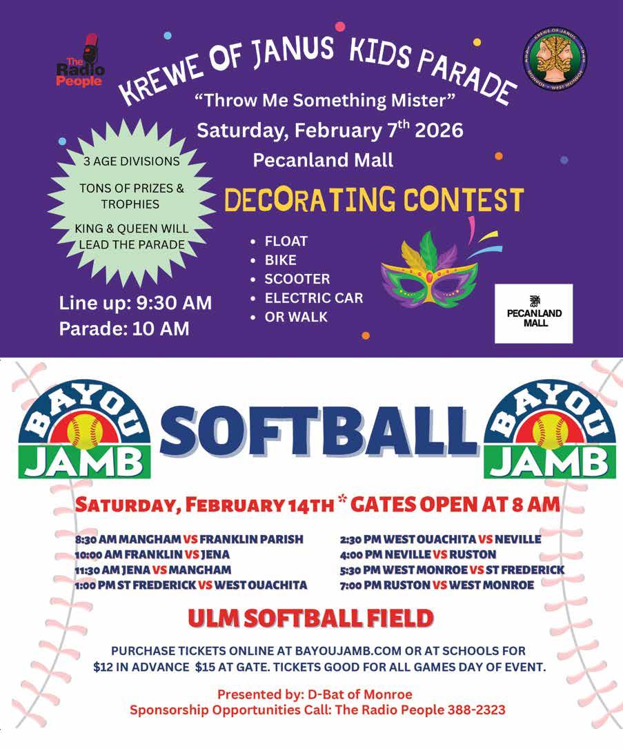 In the Livingston household it’s a time for celebration – both of my daughters’ birthdays, my mom’s birthday, Valentine’s Day, Mardi Gras, and the important observance of Black History Month. This February brings an extra dose of excitement as our Twin Cities parades roll on the very same day, make sure to mark your calendar for February 7th to watch the Krewe de Riviere and the Krewe of Janus (page 112). Then, the fun continues the following weekend as the Krewe of Iris rolls through New Orleans on Valentine’s Day. It’s a month that truly captures the spirit and culture of our community.