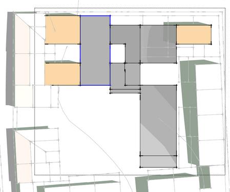 El modulo genera la figura del octágono que funciona como centro y se generan los lotes en relacion a este.
