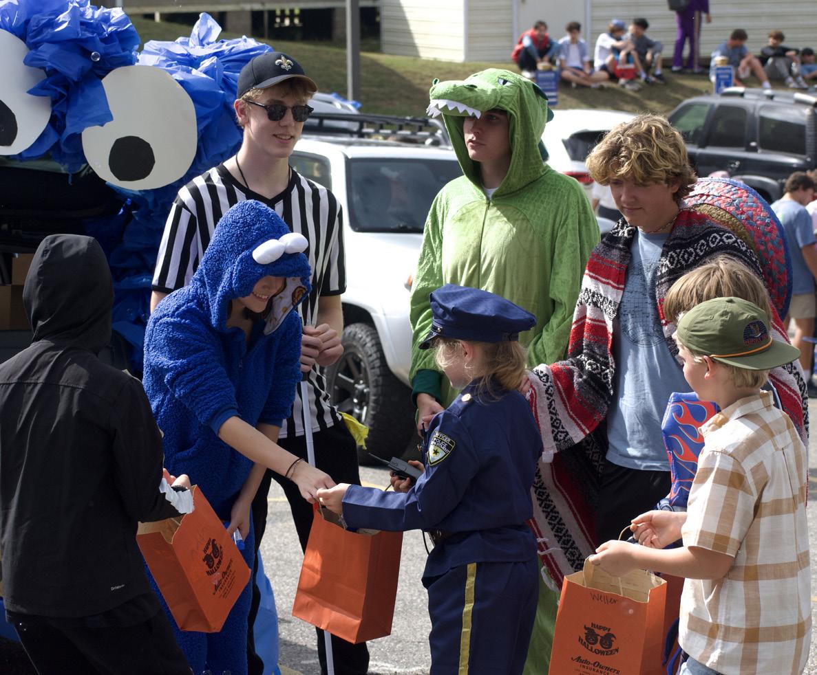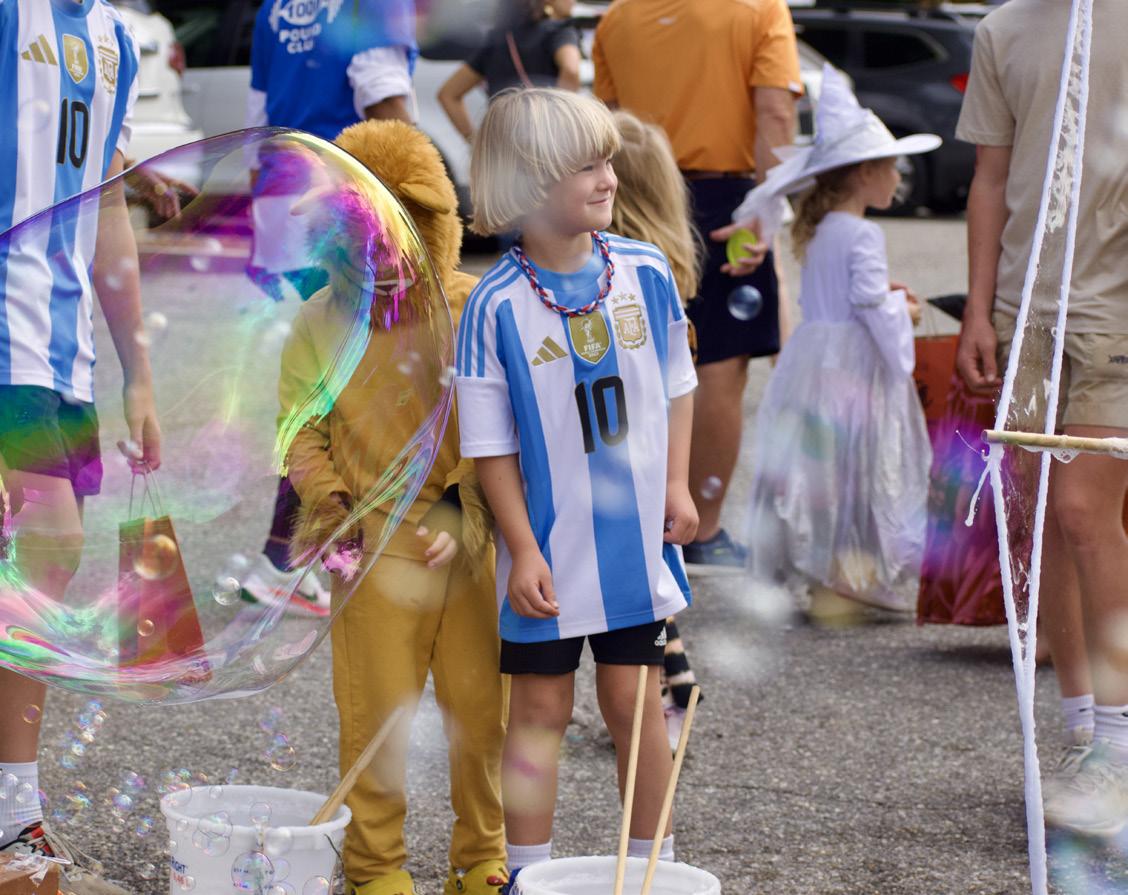 Set up started early, as Upper School students decorated their cars to the delight of younger Admirals who “trunk-or-treated” their way around the parking lot. Accompanied by parents, eighth grade buddies, teachers, and friends, costumed Early and Lower Schoolers received chocolates and candies from the older students. From farmers complete with a John Deere tractor and chickens to yellow Minions and Christmas elves, it was a Community Time treat for all.