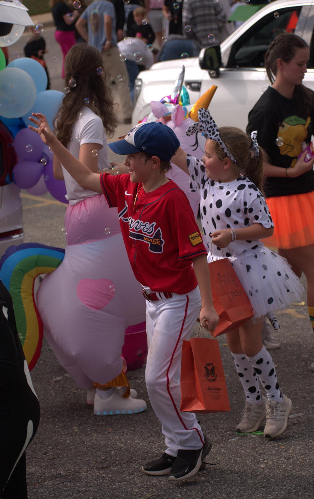 3. Catching bubbles, Everett Cutright ‘35 and Anne Carson Vance ‘35 traverse the lot with bags lled with candy and sweets. 1 2 3 4