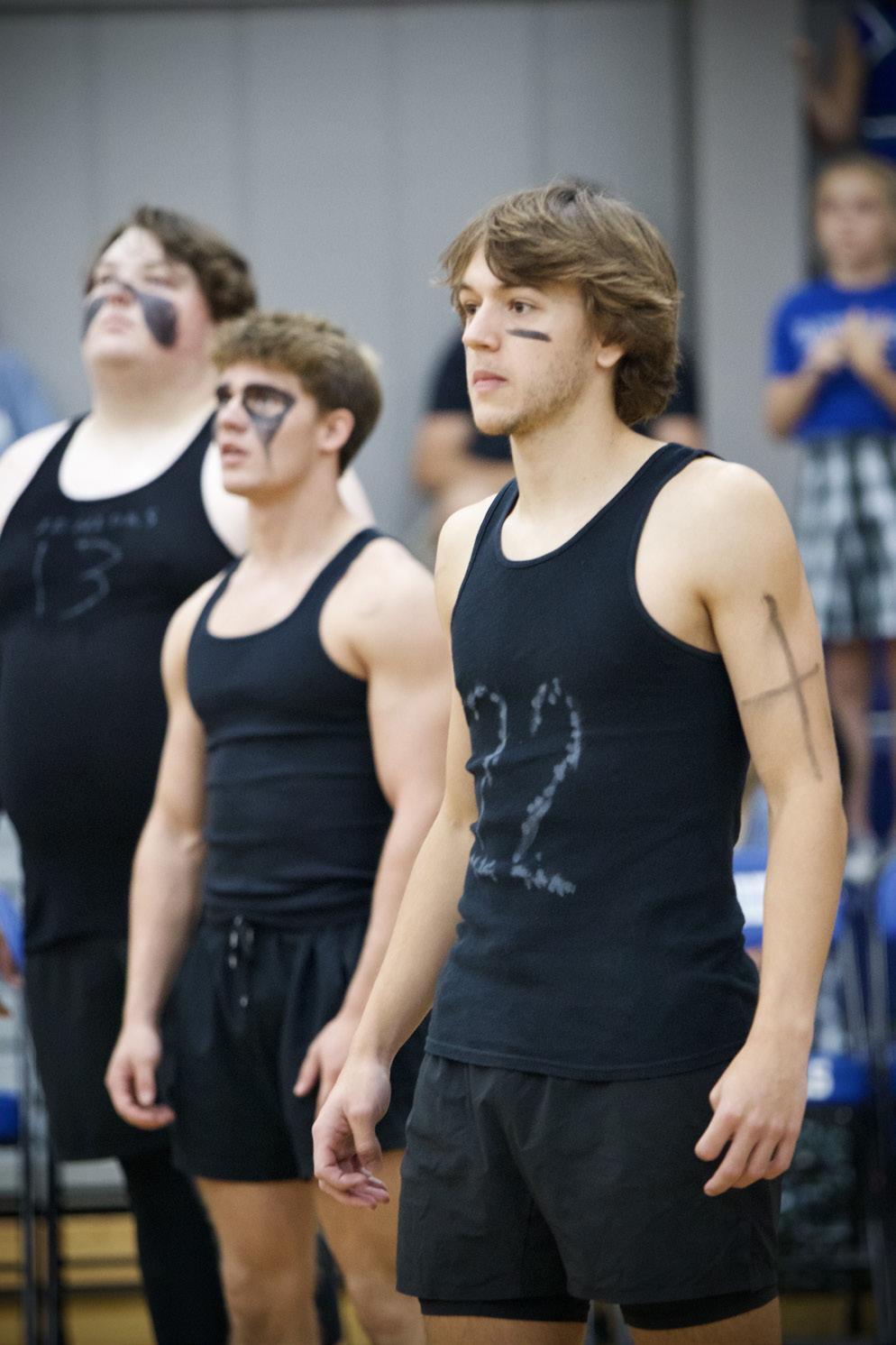 1. Working in groups to form tighter bonds, ninth graders participate in various team-building activities.