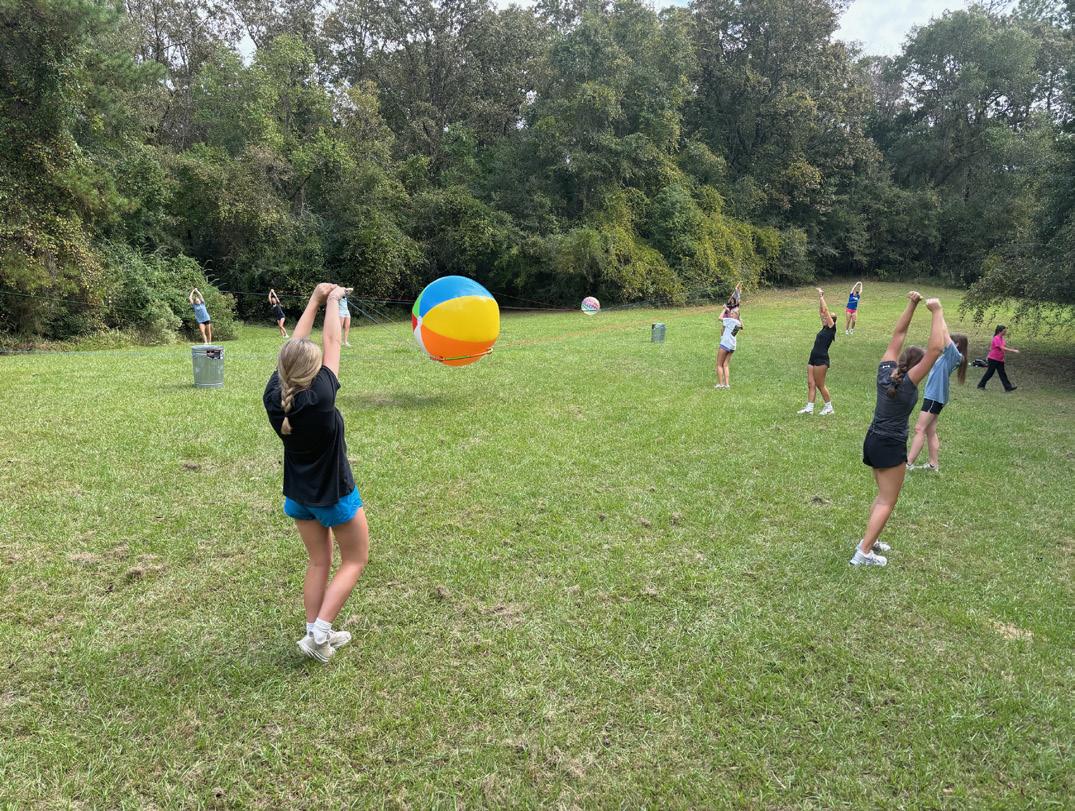 The cheerleaders can always be found at pep rallies and during football and basketball games, but much more takes place behind the scenes that many people miss. Every summer, before the football season begins, the cheerleaders head to UCA Cheer Camp. is year in Gulf Shores, the team won rst place in the dance routine, band dance, and cheer categories and second place in sideline. Mai Mai Chatwood ‘25, Lanee Imperato ‘25, Graceyn Kern ‘26, and Marley Ullock ‘26 were named UCA All-Americans. Additionally, Graceyn Kern ‘26 and Virginia Merchant ‘26 were presented the Pin It Forward Award, recognition given by a UCA sta member to commend cheerleaders for their enthusiasm and outstanding qualities. Merchant said, “With it being my rst year doing cheer, and with a mostly new team, I was really proud of all of us for our accomplishments at camp.”