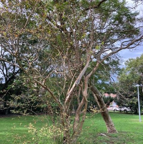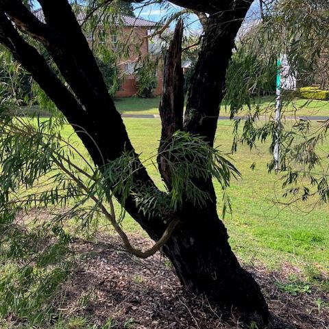 T1 Agonis flexuosa Willow Myrtle Tree is leaning north-west. Southern trunk is dead.