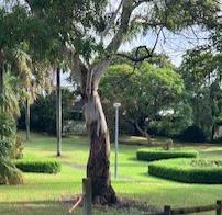 T7 Cinnamomum camphora Camphor Laurel Environmental weed species. Extensive basal suckers, decay in old pruning wounds and large cavity near trunk base.