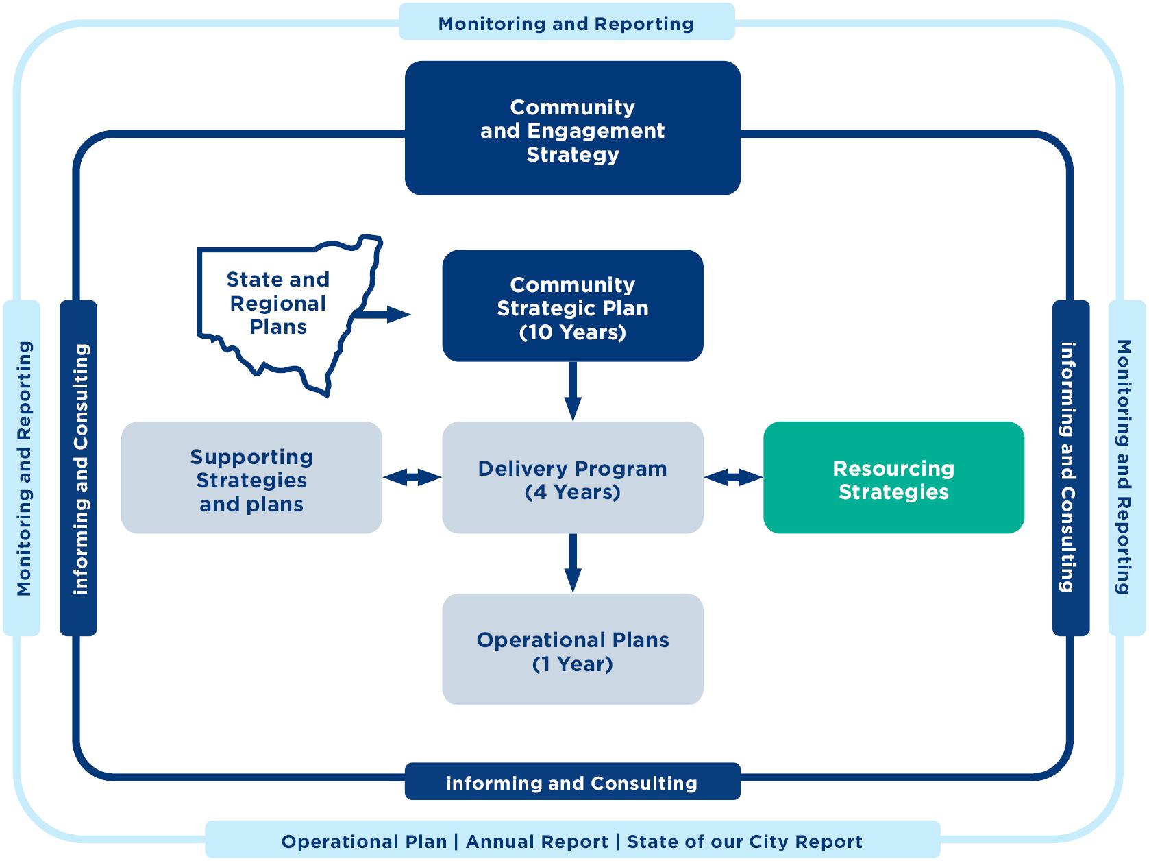 The themes, community outcomes, strategies and measures outlined in this plan will inform Council’s Delivery Program which sets the outcomes Council will work towards during the current term of office, and the annual Operational Plans that describe Council’s activities towards achieving those outcomes. The plan includes a measurement framework for each theme which will allow us to monitor progress towards achieving community outcomes.