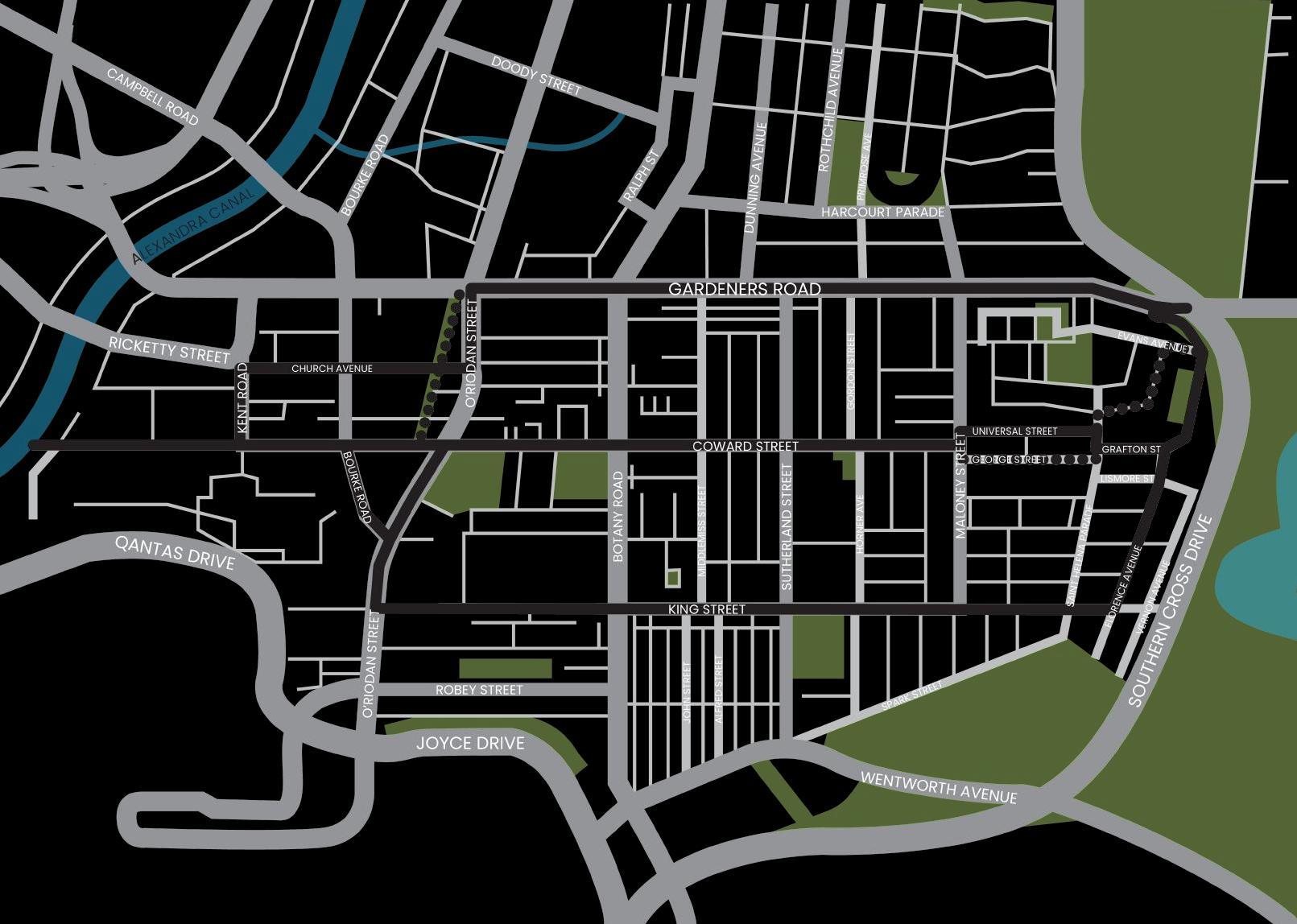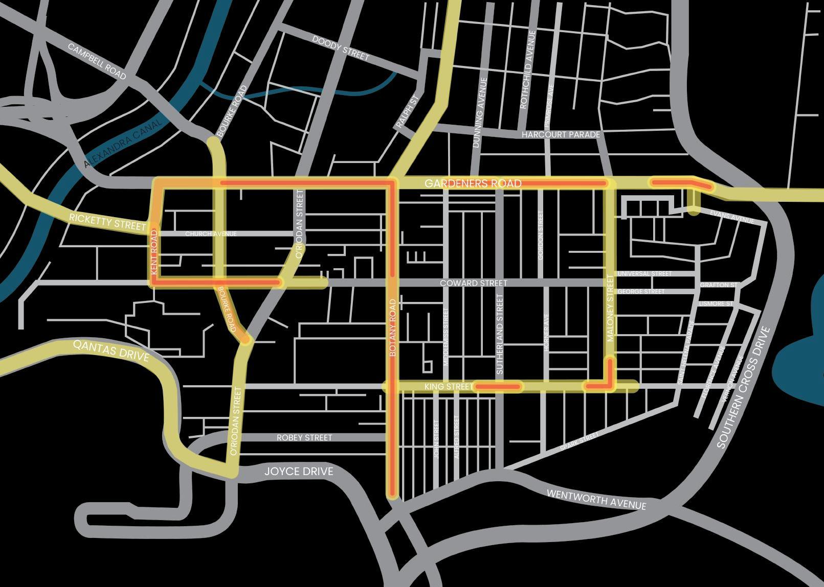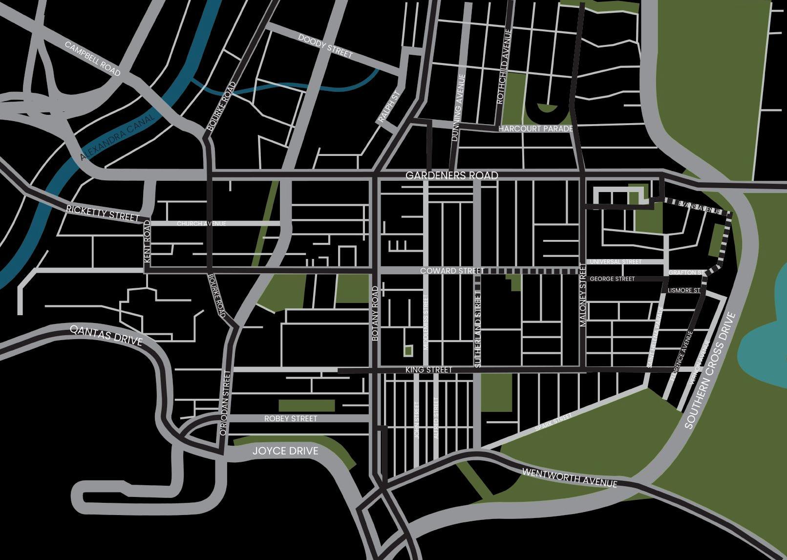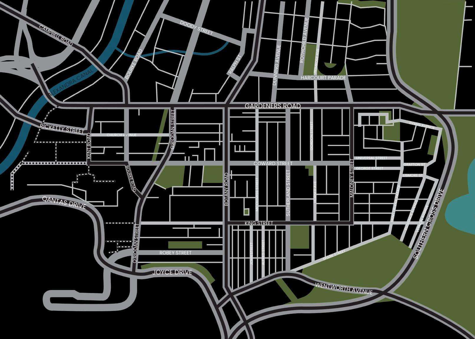 Botany Road and Gardeners Road are well established town centres with shop fronts facing busy trafficked road as well as the various roads which intersect it.