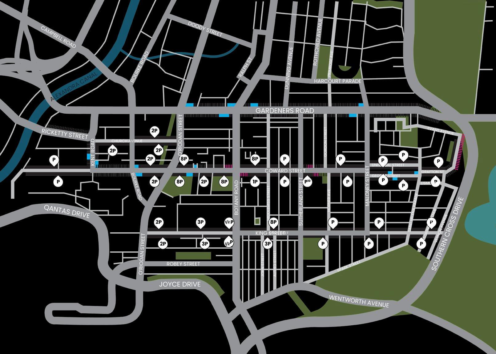 On street parking is measured by reviewing the enforced time limits and anticipated levels of turnover. Typically, the areas with restricted parking times and high turnover are associated with their adjacent land use; commercial areas, near schools, and close to key destinations such as the Sydney Airport. Lower turnover numbers are anticipated within residential areas.
