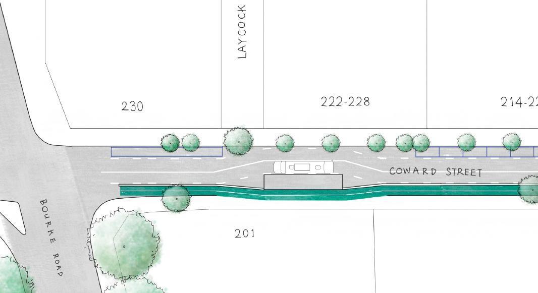 Additionally, a shared path cycleway is likely to be unsuitable due to the high pedestrian numbers and active frontages within the area. A number of street trees, planter boxes and other obstacles create bottle necks which may lead to an unsafe environment. For this reason, Council recommends the cycleway avoid Coward Street between Bourke Road and O’Riordan Street.