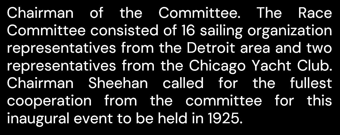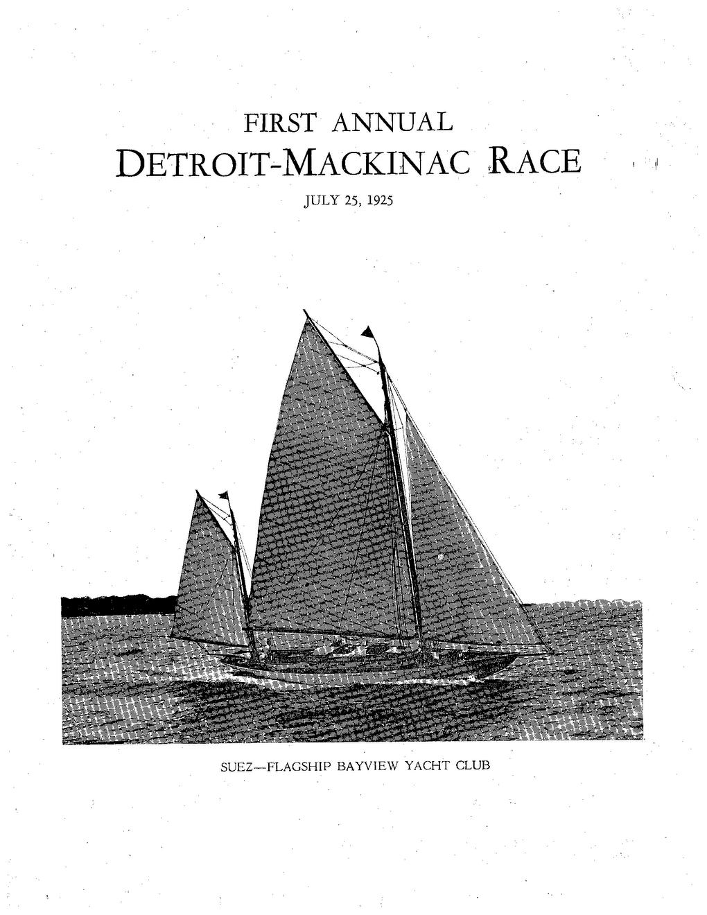The tendency among American Yachtsmen of today, being towards long distance racing, it seemed advisable for such a race to be available in Detroit. The Detroit-Mackinac Race was therefore sponsored by Detroit and Port Huron Yachtsmen, and it is hoped much pleasure and benefit will be derived therefrom