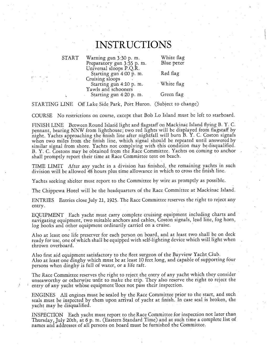 1925 Bayview Mackinac Race Program