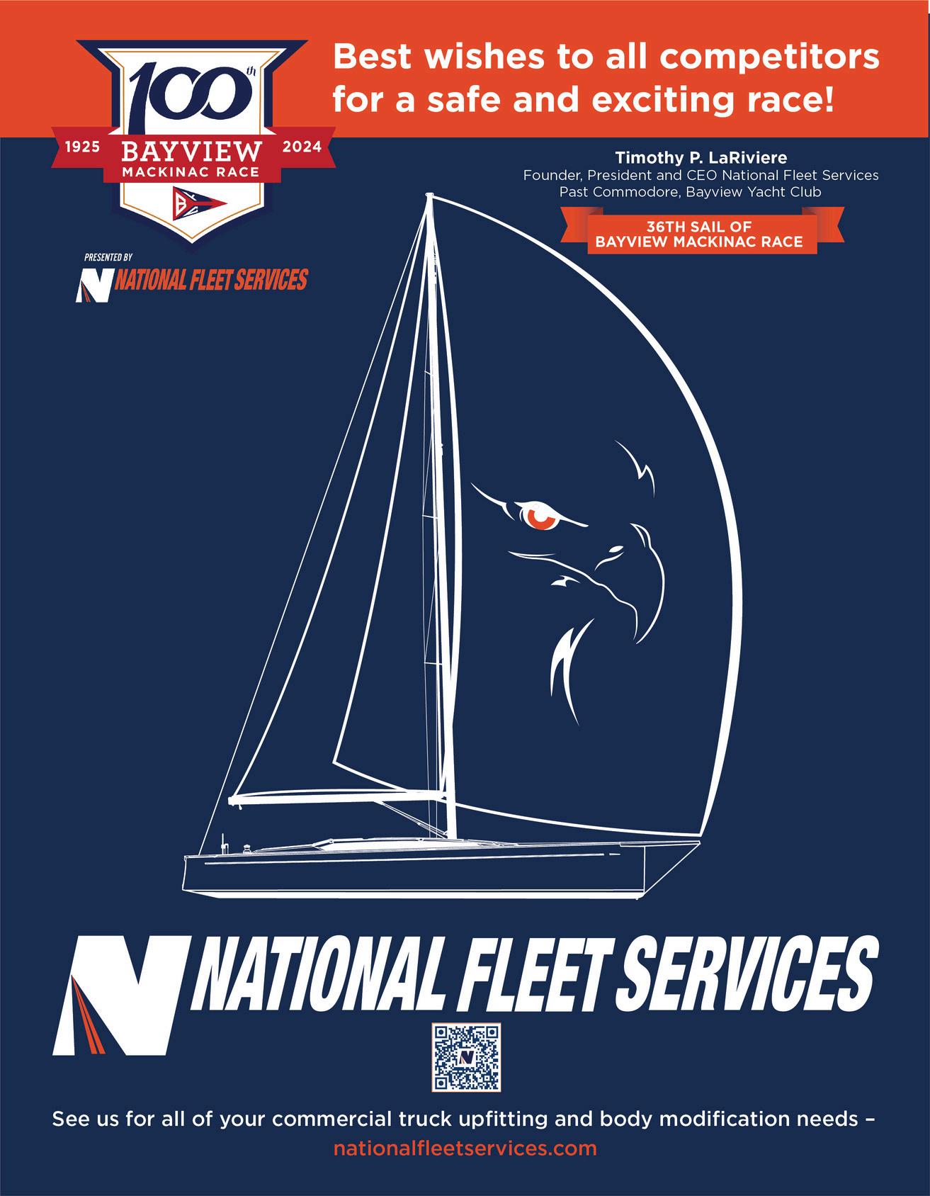 On behalf of Bayview Yacht Club, I am honored to welcome you to the 100th running of the Bayview Mackinac Race, presented this year by National Fleet Services!