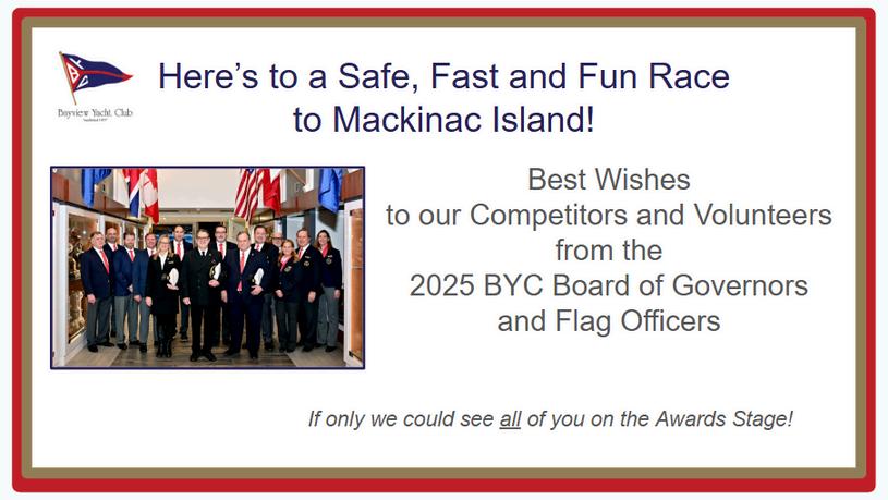 While I am the Race Chairman for this one year, (and in my third year of a five-year term on the Mackinac Race Authority (MRA), many of our volunteers have served for years, decades. Please be sure to thank them when you see them.