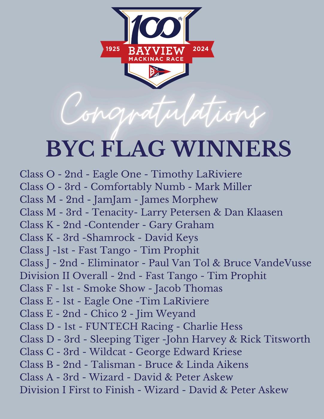 Thank you all for making this 100th edition so memorable. Your dedication and passion continue to inspire and drive the spirit of the Bayview Mackinac Race.