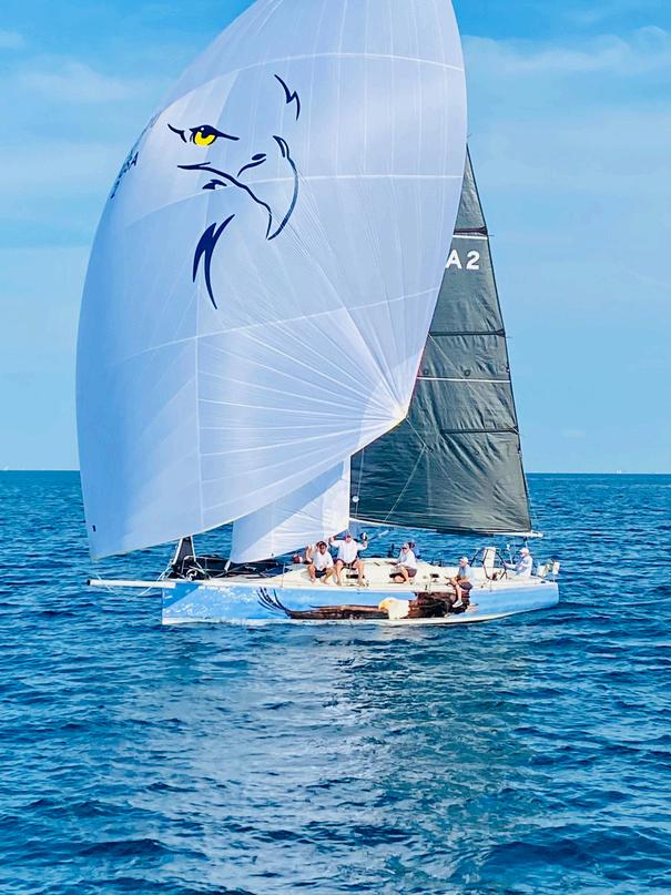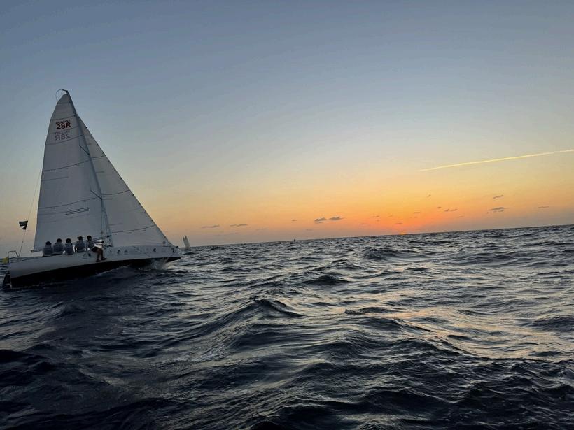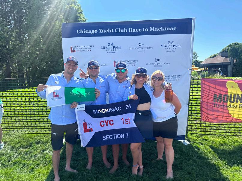 The team was going for it from the start, trying to snag the coveted first place overall, and was seen at the top of the leaderboard until there was an unfortunate mishap during a wretched storm Sleeper was lucky in comparison to the beating other boats and crew took. The storm that dismasted four boats and even led to a [thankfully recovered] man-over-board on anotherboatonlyshreddedourbiggestkite,our A2 spinnaker Even with our biggest kite unavailable, we sailed hot when it went light, kept our spirits high, and consistently kept the boat speed faster than the wind speed even whenitwasbrutallylightout.Wewereproudof ourteam'seffortandgratefulfortheexperience and the knowledge it bestowed on us when we finallyfinishedtheChicagoYachtClub'sRaceto Mackinac in first place for Section 7 This race showcasedourcapabilitiesasyouthsailorsand gave us a glimpse of what's possible in shorthandedoffshoreracing
