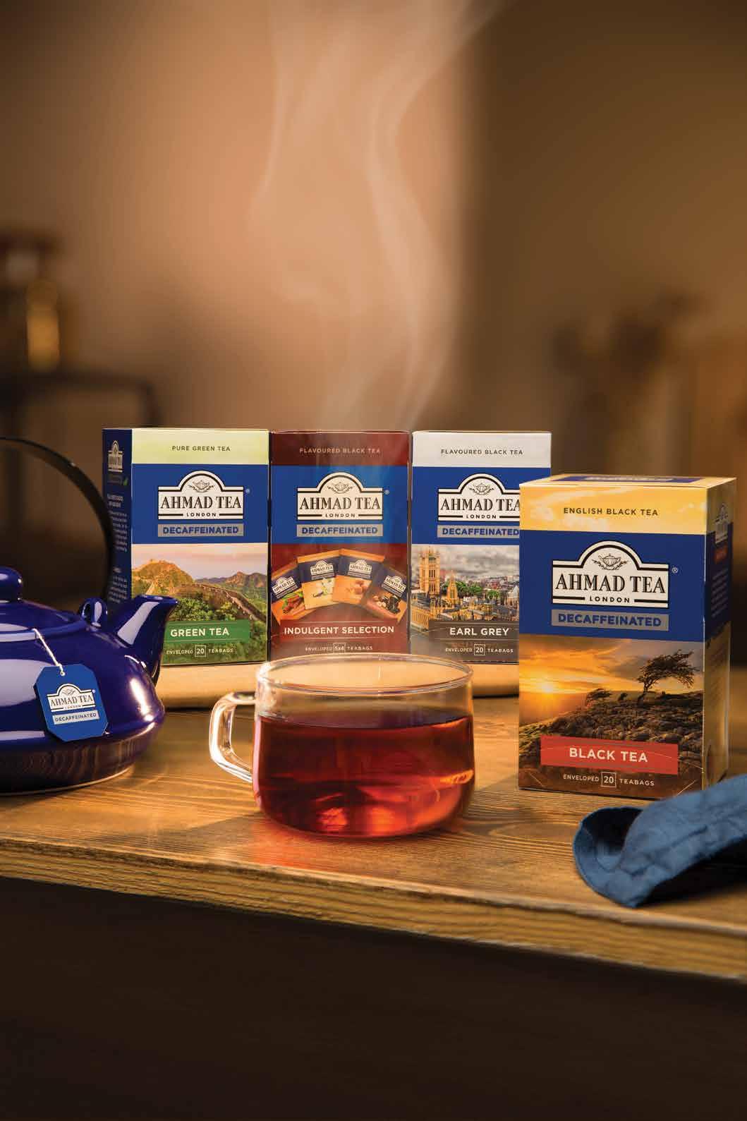 booming, decaffeinated tea is set to surge in popularity as people look for the comfort of a good brew to refresh and recharge. However, when it comes to taste, all too often, decaf teas don’t stand up to scrutiny. Our new Decaffeinated Tea Collection is exciting as we’re offering tea lovers a depth of flavor that really does deliver – from our bold Black Tea to our Indulgent Dessert-Inspired Selection, the new collection offers the same signature flavors that people expect from a cup of Ahmad Tea, with a fraction of the caffeine. At