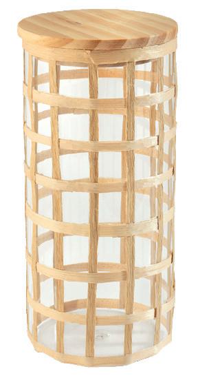 Le bocal de cuisine En verre et bois, 4,49 e en 0,8 L, 5,49 e en 1,1 L et 5,99 e en 1,4 L.