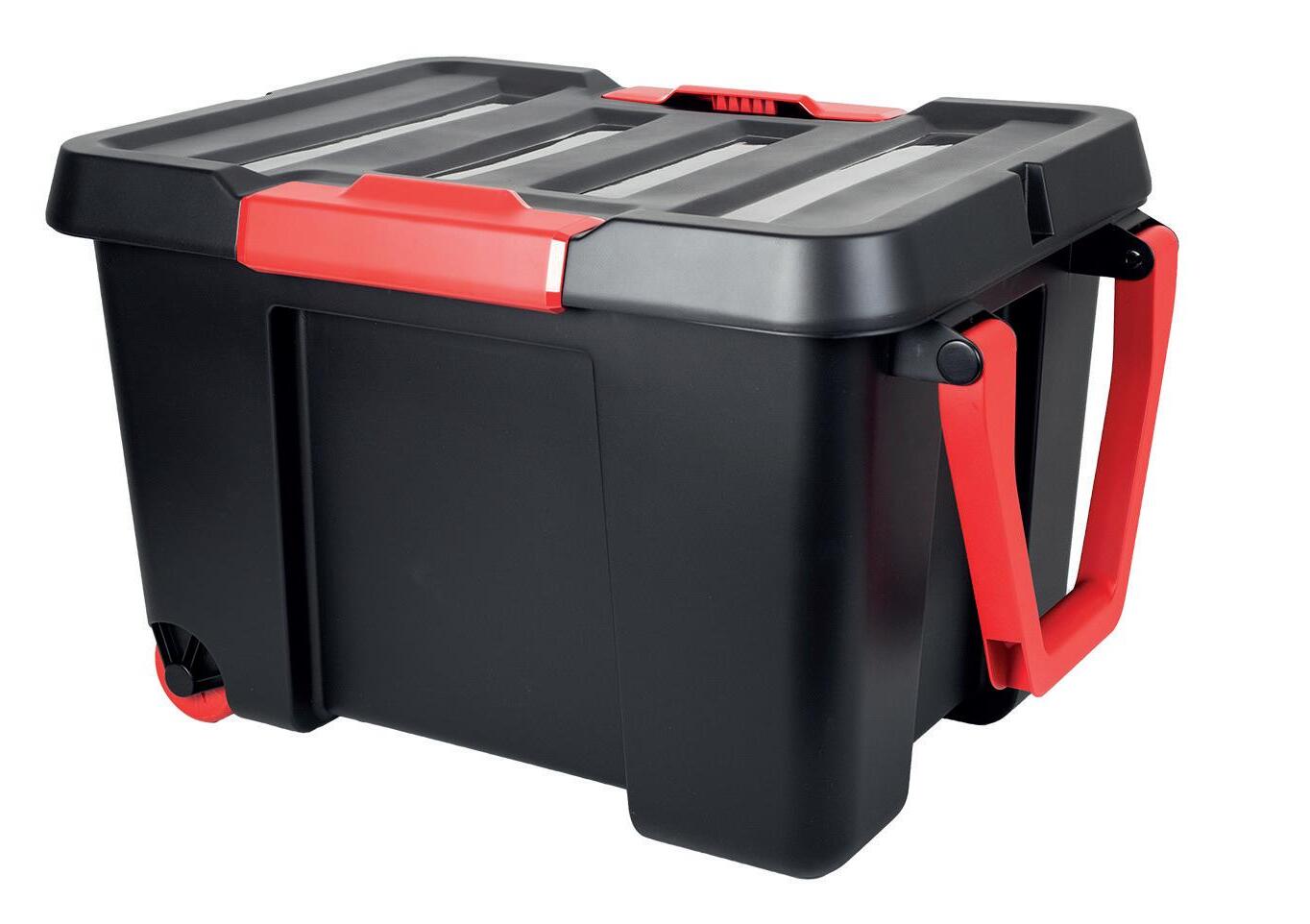 75 x 45,3 x 39 cm, en polypropylène, couvercle à charnières pour une fermeture sécurisée, 2 roulettes. Éco-part incluse 0,55 e