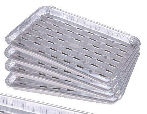 Le lot de barquettes en aluminium 0,79 e les 6 avec couvercle en 19,5 x 14,5 x 4 cm, 1,29 e les 4 en 34 x 23 x 3 cm et 1,79 e les 2 avec couvercle en 33 x 25,5 x 5 cm.