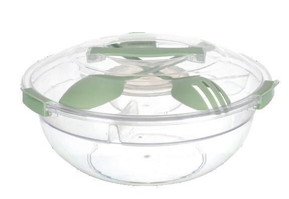 Saladier refermable avec couverts Ø 33 x 14 cm, 5 L, en polystyrène, jaune ou vert.