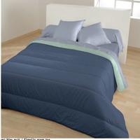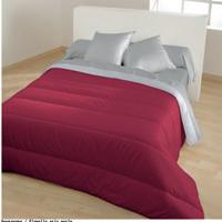 La couette “Création” microfibre Microfibre imprimée faux uni, bicolore, avec biais tendance, enveloppe microfibre 100 % polyester émerisé, toucher peau de pêche, garnissage polyester fibre creuse siliconée 250 g/m², piquage lignes droites finition biais fantaisie, 17,99 e (éco-part 0,12 e) en 140 x 200 cm et 29,99 e (éco-part 0,18 e) en 220 x 240 cm.