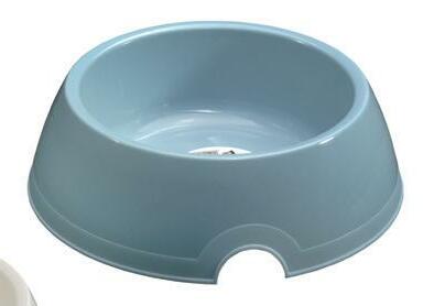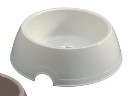 La gamelle ronde Plastique alimentaire, sans BPA, compatible lave vaisselle, plusieurs coloris, 0,79 e en 19 x 8 cm, 1,29 e en 23 x 6,5 cm “anti glouton” et 1,49 e en 24 x 9,5 cm.