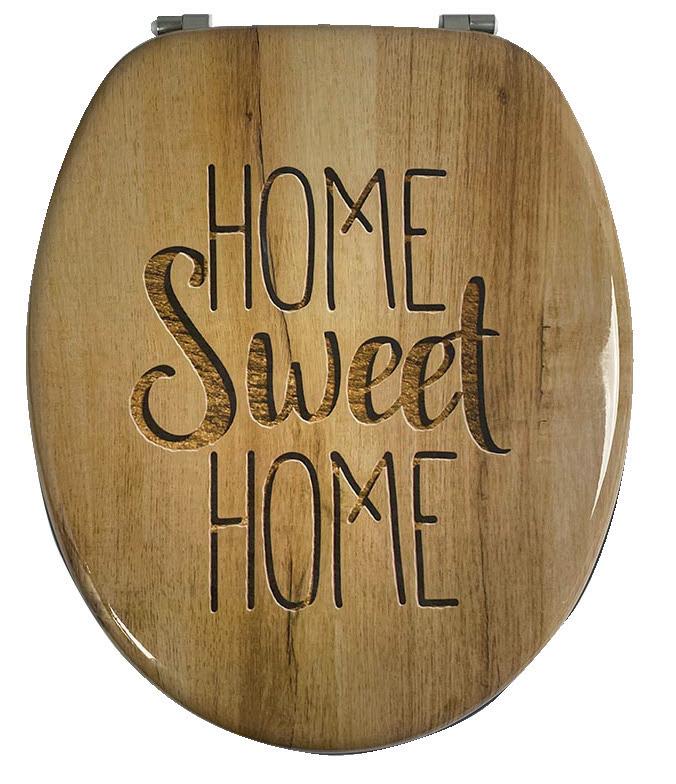 Abattant WC “Home sweet home” Bois moulé, charnières inox.