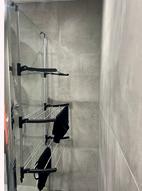 Pot + brosse WC flexible 9,8 x 4,3 x 35 cm, manche et support noir en thermoplastique, fixation au mur sans perçage inclue. L’accessoire de salle de