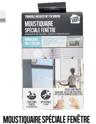 Lot de 2 oreillers 60 x 60 cm, 350 g/m2 Éco-part incluse 0,40 e Bougie citronnelle Dans pot en terre cuite, 13 x 6,5 cm. Moustiquaire pour berceau 130 x 70 x 33 cm, en polyester blanc, avec bande élastique. La moustiquaire pour fenêtre ou porte 1,49 e en 150 x 130 cm, 2,49 e en 150 x 250 cm, 3,49 e en 90 x 210 cm et 4,49 e en 200 x 100 cm magnétique. Éco-part incluse 0,04 e Désinsectiseur Ø 12 x 19 cm, en polypropylène, câble USB 1 m fourni, blanc ou noir. Piège à guêpes 13 x 9 cm, en verre, bouchon en liège, 4 coloris. Matelas gonflable floqué 1 place, 185 x 76 x 22 cm. Pack de 15 bougies chauffe plat citronnelle Lot de 3 pièges à mouches 21 x 5 cm l’unité. Prise répulsif pour insectes Raquette électrique attrape insectes 46 m, piles non fournies. La bougie citronnelle Dans 1 pot en verre, 9 x 9,8 cm. Pompe à pied 5 L. Bracelet citronnelle Ø 6 cm, 200 h d’efficacité, plusieurs coloris. 10.99 e 9.99 e 2.29 e 1.99 e 1.79 e 0.69 e 1.19 e 4.49 e À partir de 1.49 e 1.79 e 2.49 e 2.29 e 0.59 e 4.49 e 17.99 e Existe aussi en 2 places 191 x 137 cm. Plusieurs couleurs Plusieurs couleurs Le lot de 2 +