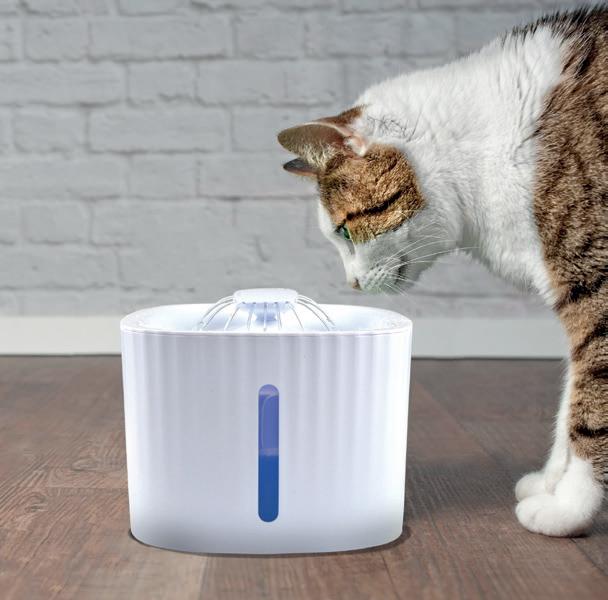 à eau pour animaux 3 L 19,5 x 19,5 x 16 cm, en polypropylène blanc, silencieux, filtre remplaçable, fonctionne sur USB ou secteur avec adaptateur, câble USB 1,2 m inclus. Éco-part incluse 0,07 e Ventilateur en métal chromé 35 x 20 x 40 cm. Ventilateur de table 30 cm, en métal et PVC, 3 vitesses, oscillant.