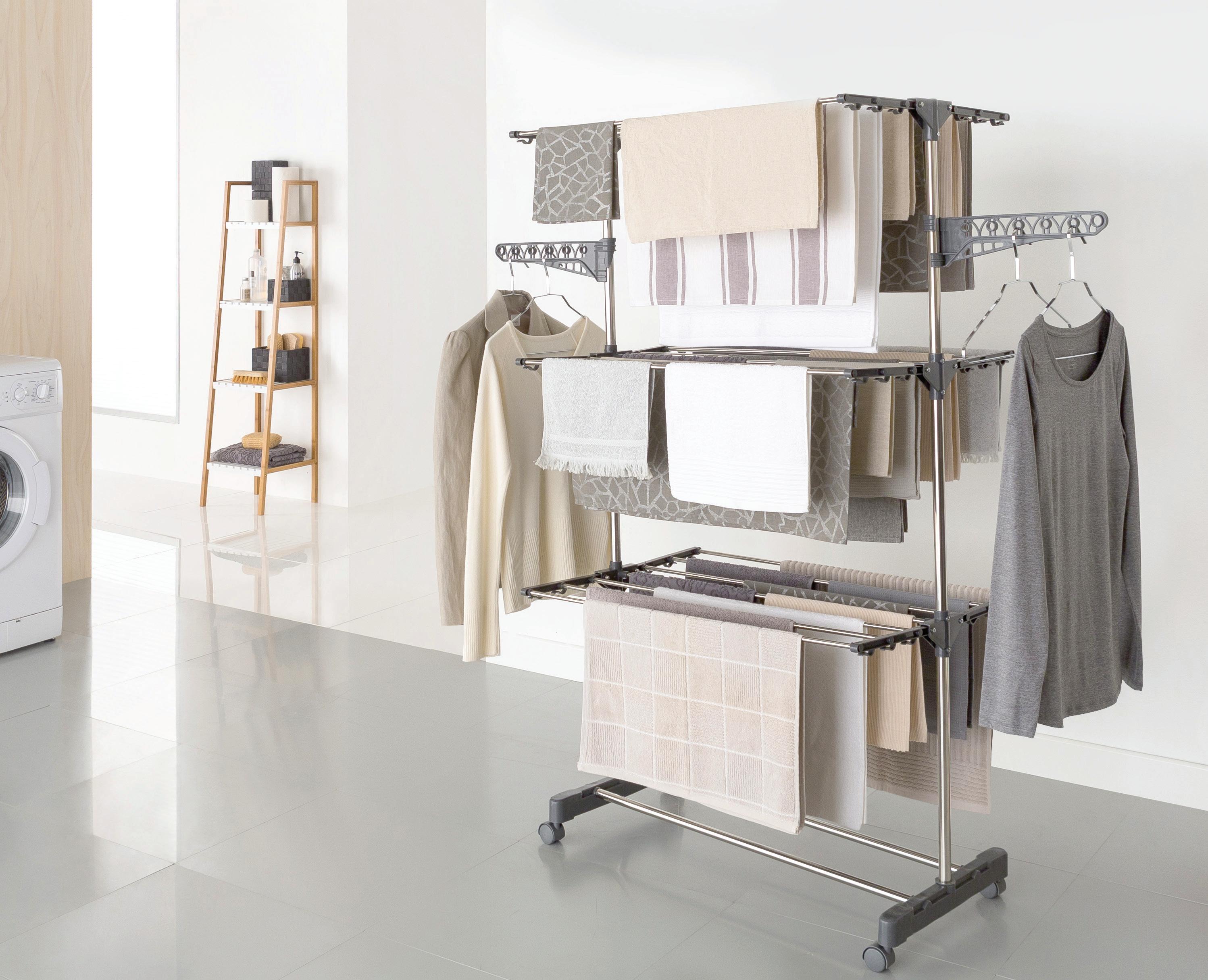 Le chausse pied “Palio” 60 cm. 0.69 e 21 m d’étendage 14.99 e Penderie 160 x 88 x 45 cm, 5 étagères et 1 tringle, en métal et polyester.