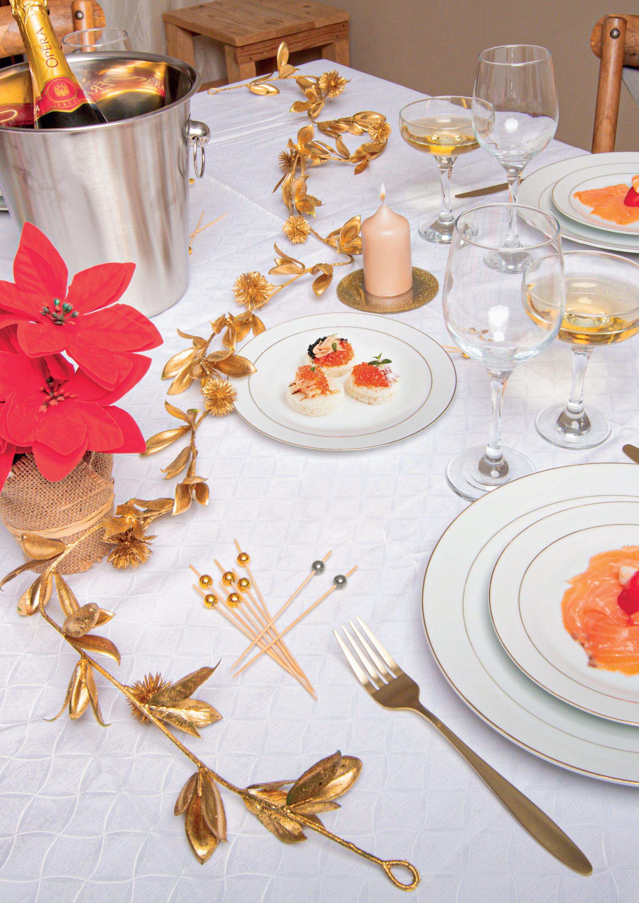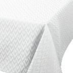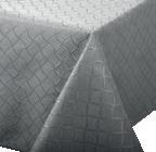 La nappe jacquard ou rhombe En jacquard, modèle “Catania” anthracite ou blanc, 7,99 e en Ø 160 cm et 8,99 e en 145 x 240 cm et modèle “Fabiola” argent ou blanc, 8,49 e en 145 x 240 cm et en rhombe polyester, anthracite, argent, blanc ou rouge, 9,99 e en 140 x 300 cm.