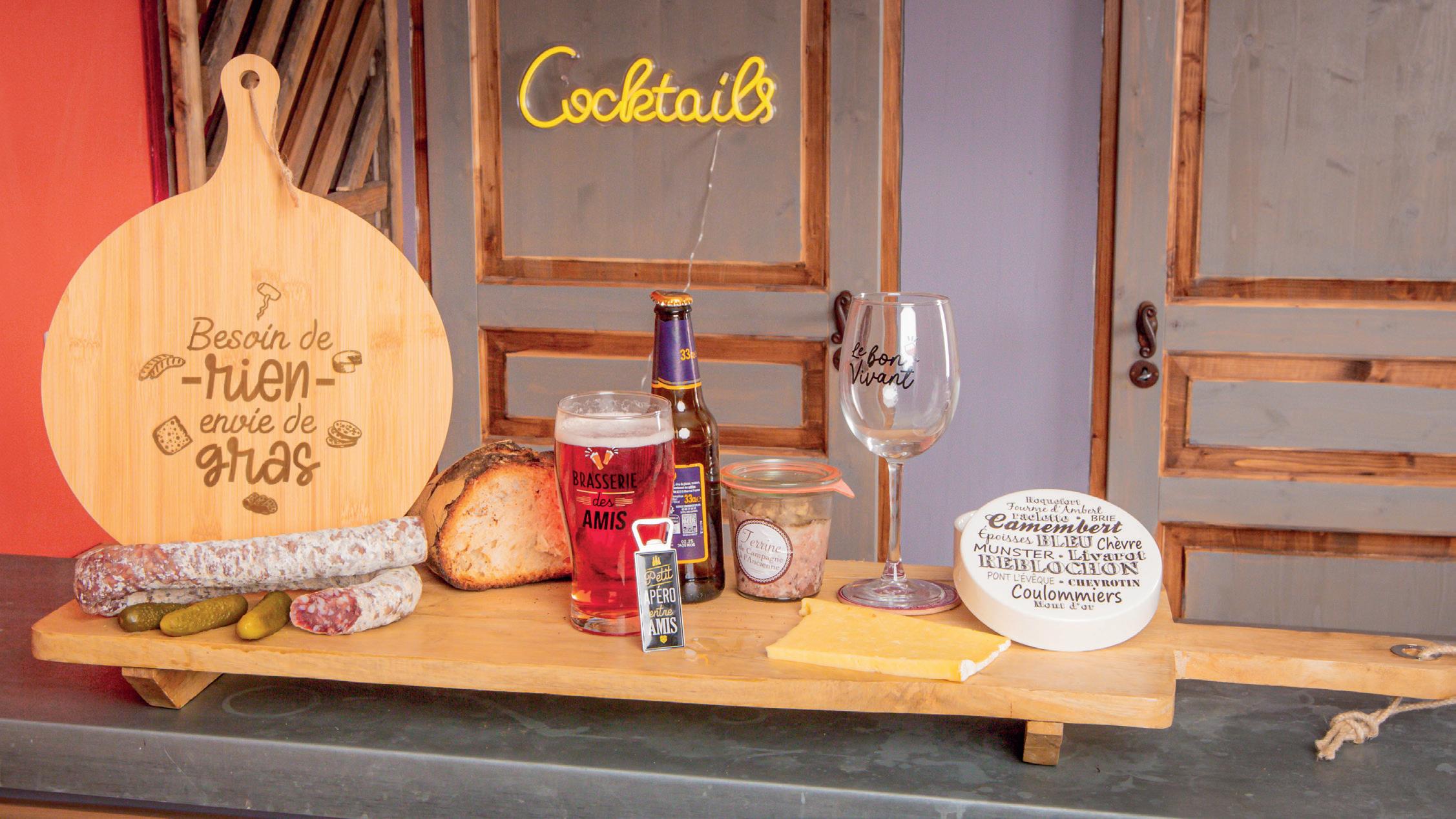 Coffret dégustation “Spécial foie gras” 28 x 14,2 x 1,2 cm, en bois et bambou, contient 1 lyre et 1 planche de découpe.