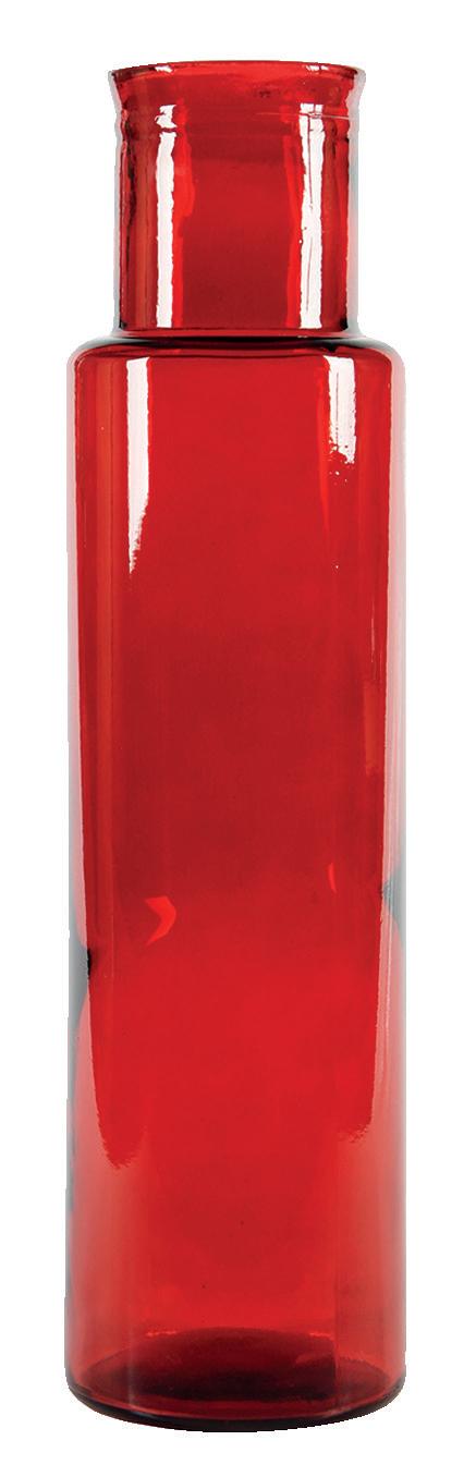 Le vase bouteille H 45 x Ø 15 cm, 5,2 L, en verre 100 % recyclé, 17,99 e en transparent et 19,99 e en rouge.
