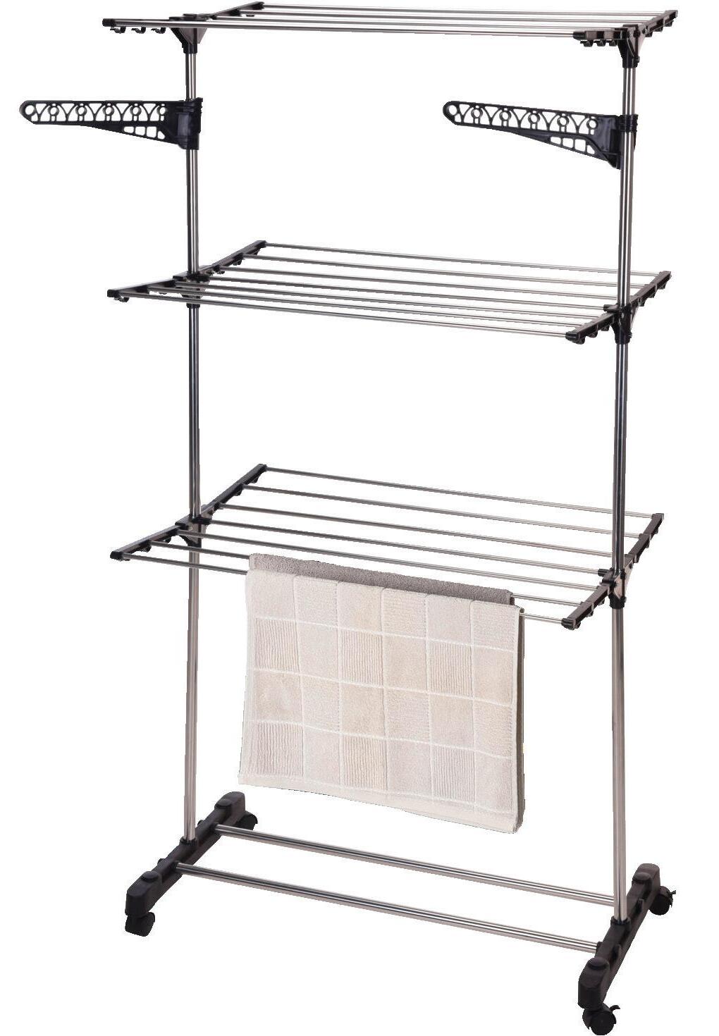 80 x 57 x 165 cm, en acier inoxydable et polypropylène, 4 roulettes.