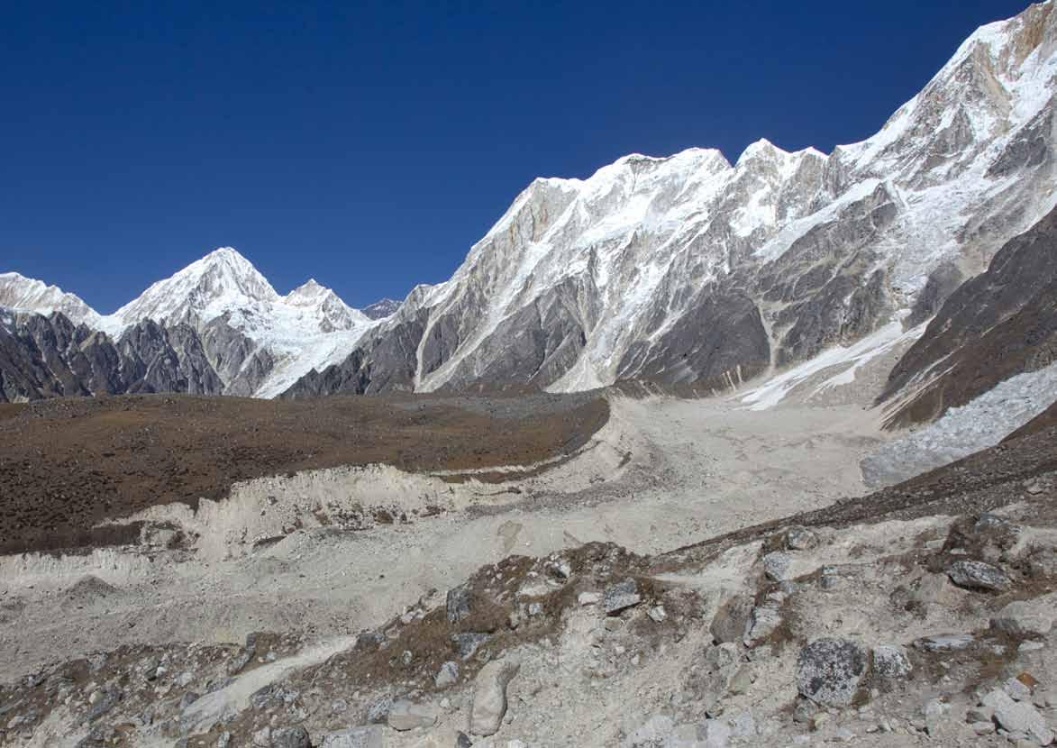 Takelis vingiuos tarp milžiniškų viršūnių, ledynų, moreninių gūbrių ir alpinių ežerų.